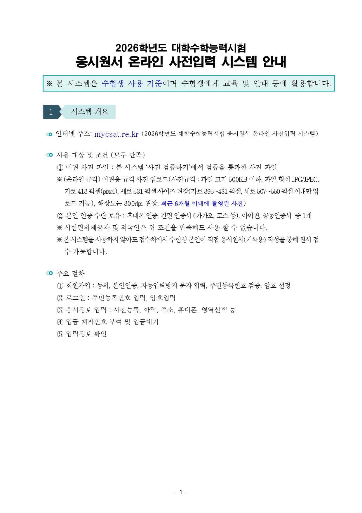 붙임 2026학년도 수능 응시원서 온라인 사전입력 안내 1부.