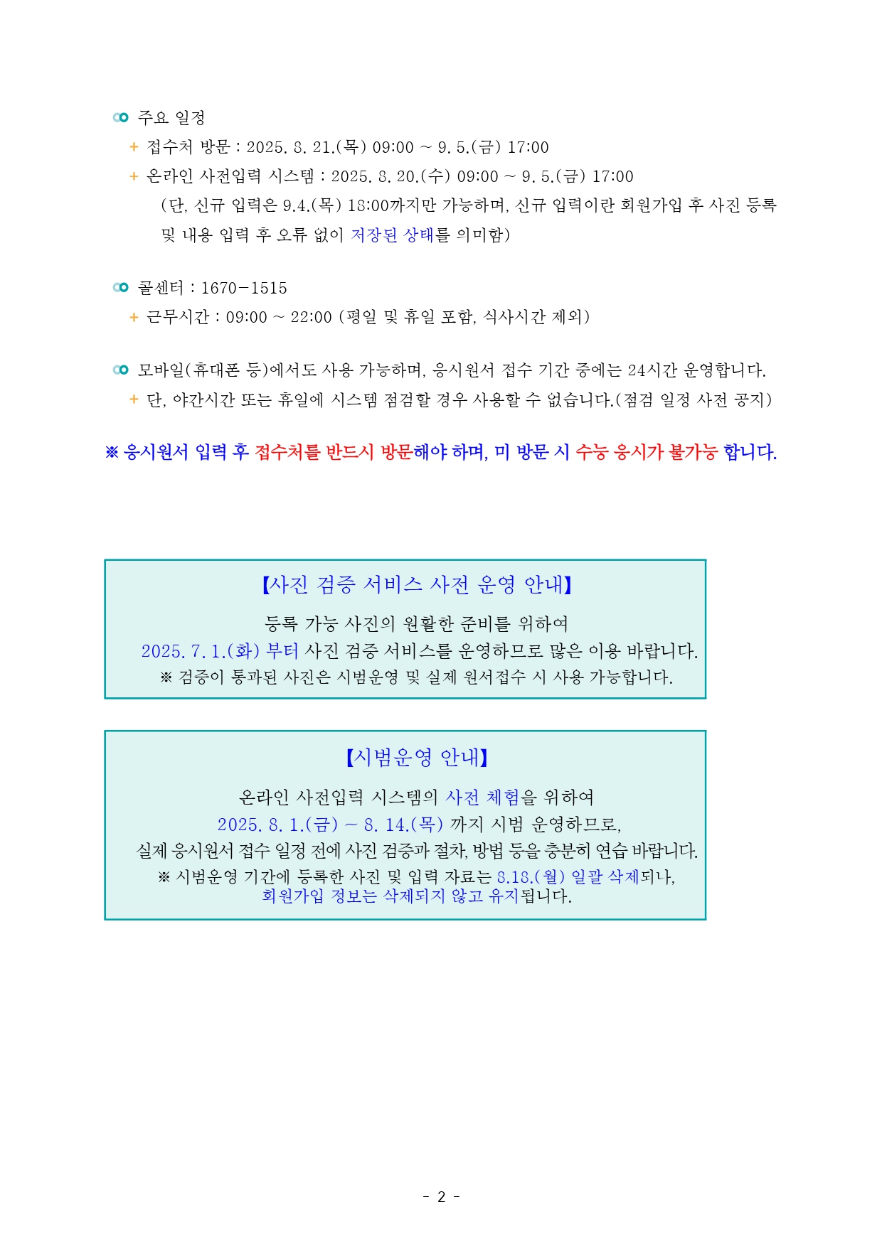 * 본 접수기간은 추후 공지사항 안내 예정이오니 참고하시기 바랍니다.