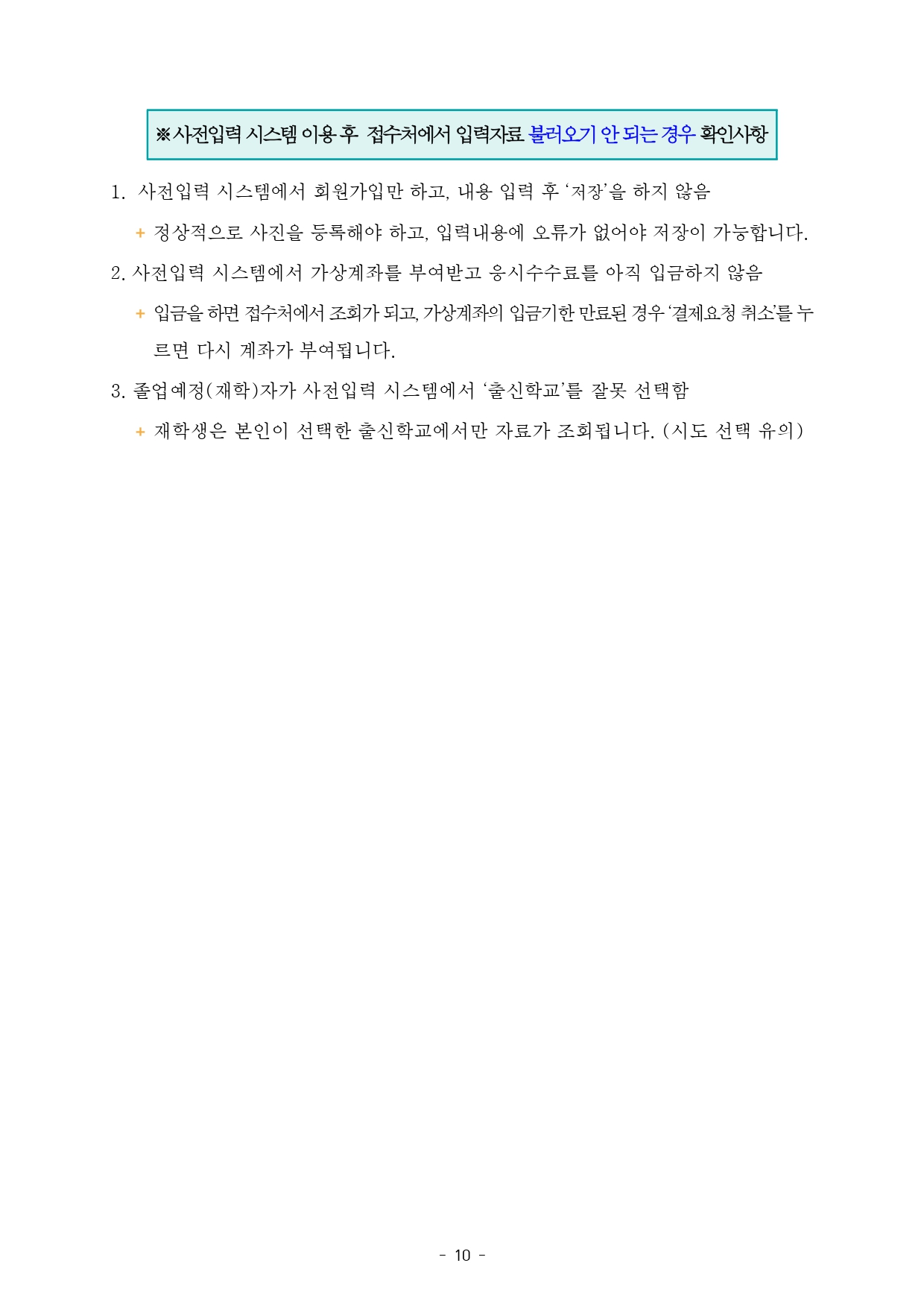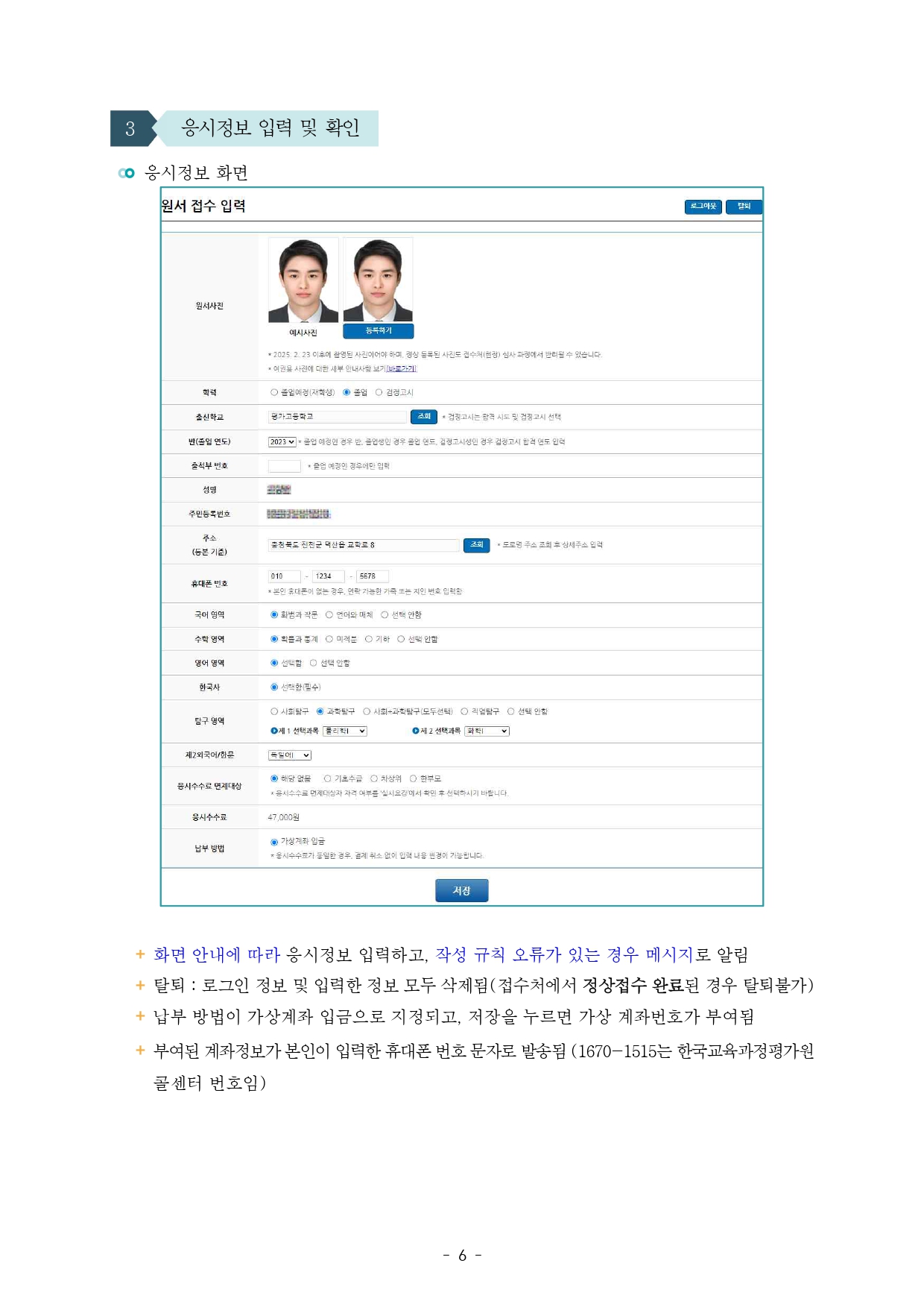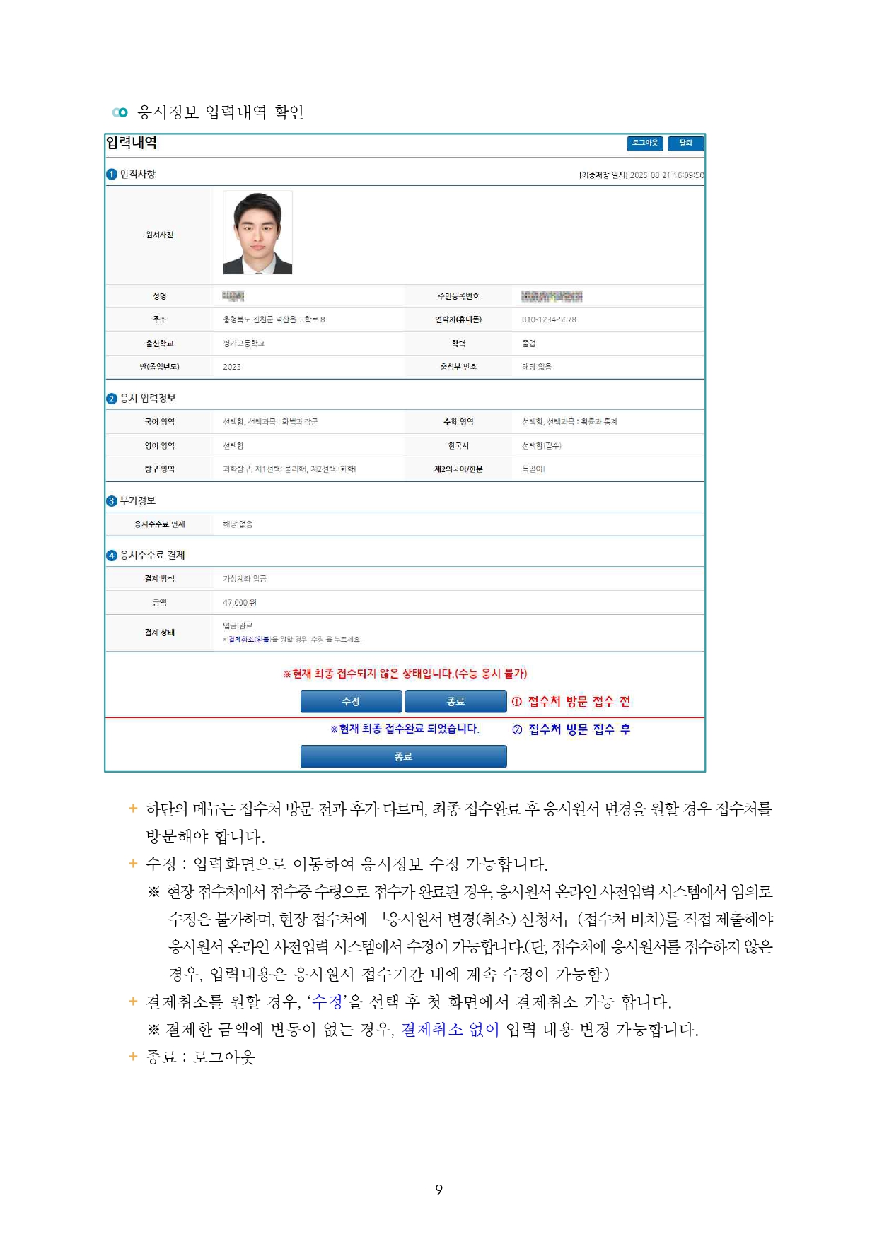 본 접수 기간에 접수처에서는 사전입력이 불가 합니다. 이번 시범 운영에서 연습하여 본 접수 기간에 사전입력 완료 후 방문하여